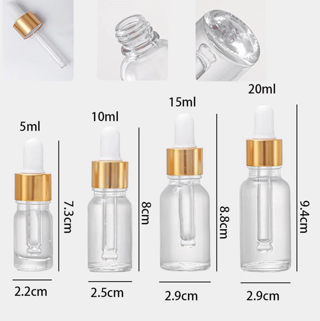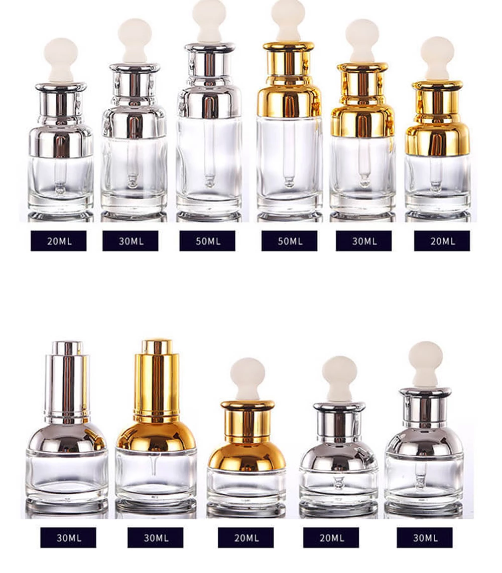Оптовая продажа прозрачных косметических флаконов-пипеток с индикатором объема от 5 мл до 20 мл.