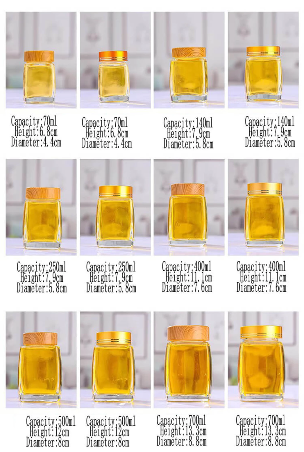 Бутылки из стекла оптом бывают разных размеров, поэтому вы можете выбрать нужный размер для вашего целевого рынка и стиля. Также размер может быть настроен. Вы можете выбрать: